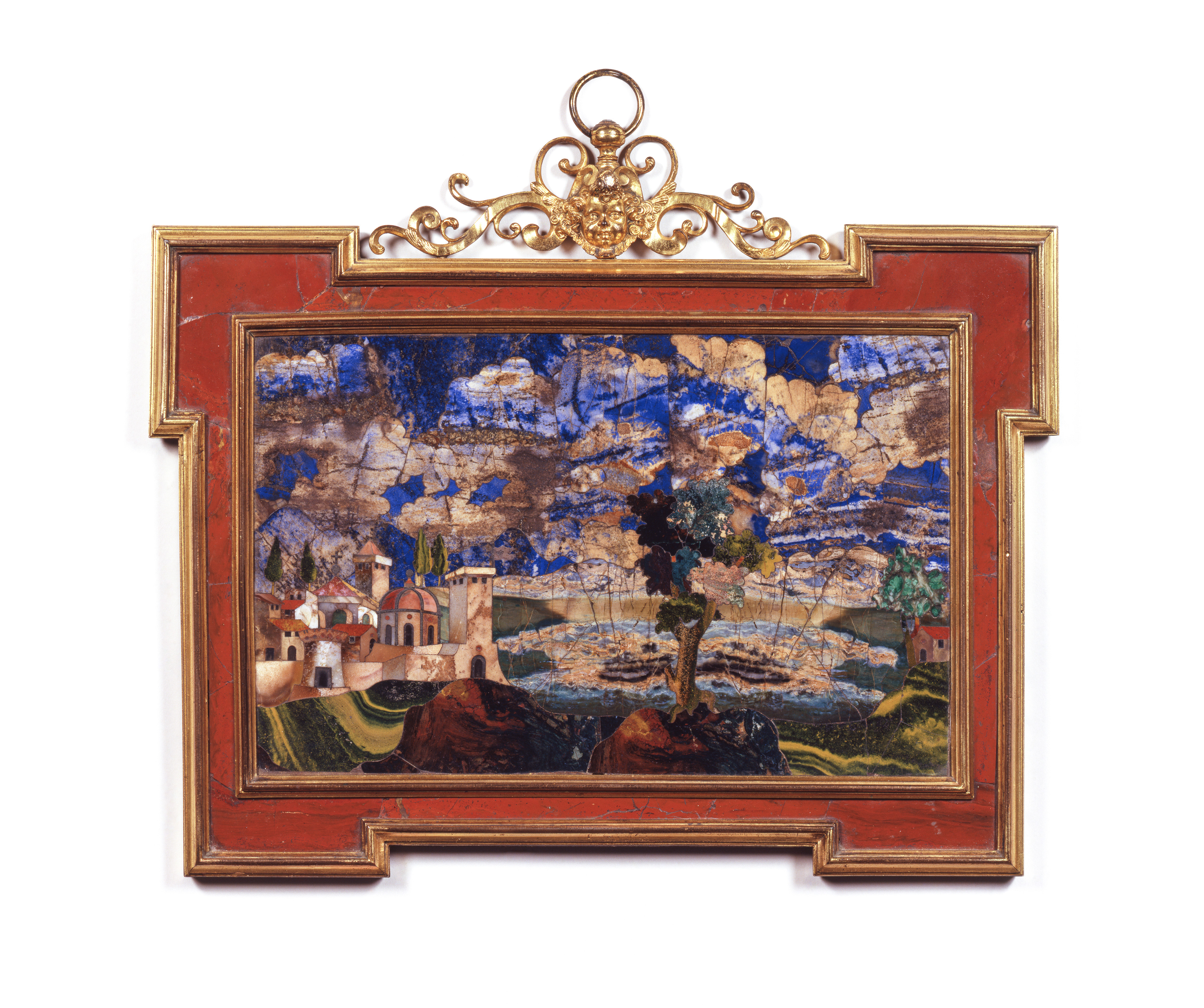 Lapis lazuli, agate, jaspers, gilt bronze