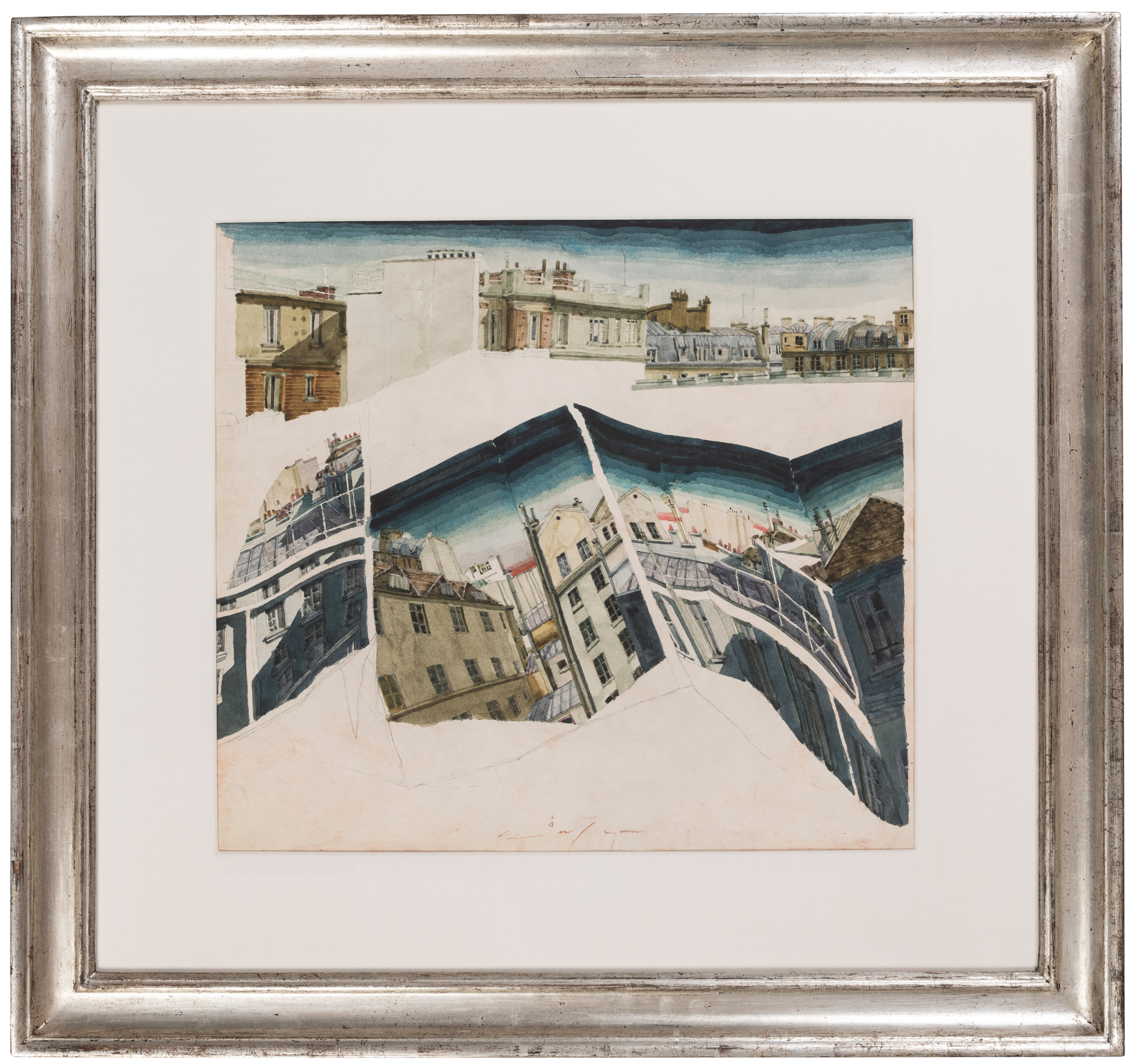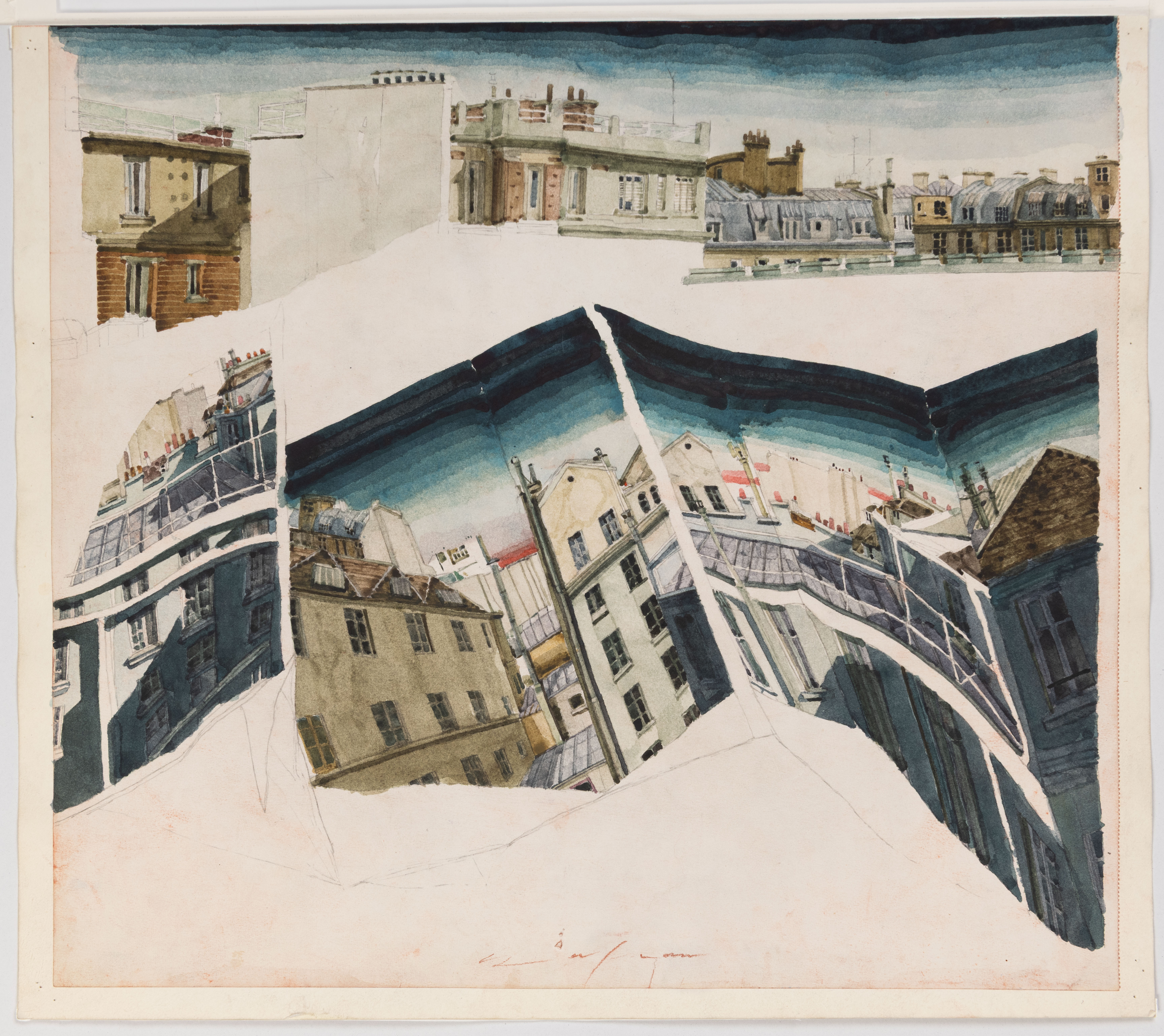 Watercolour over a pencil underdrawing, on a page from a large sketchbook.