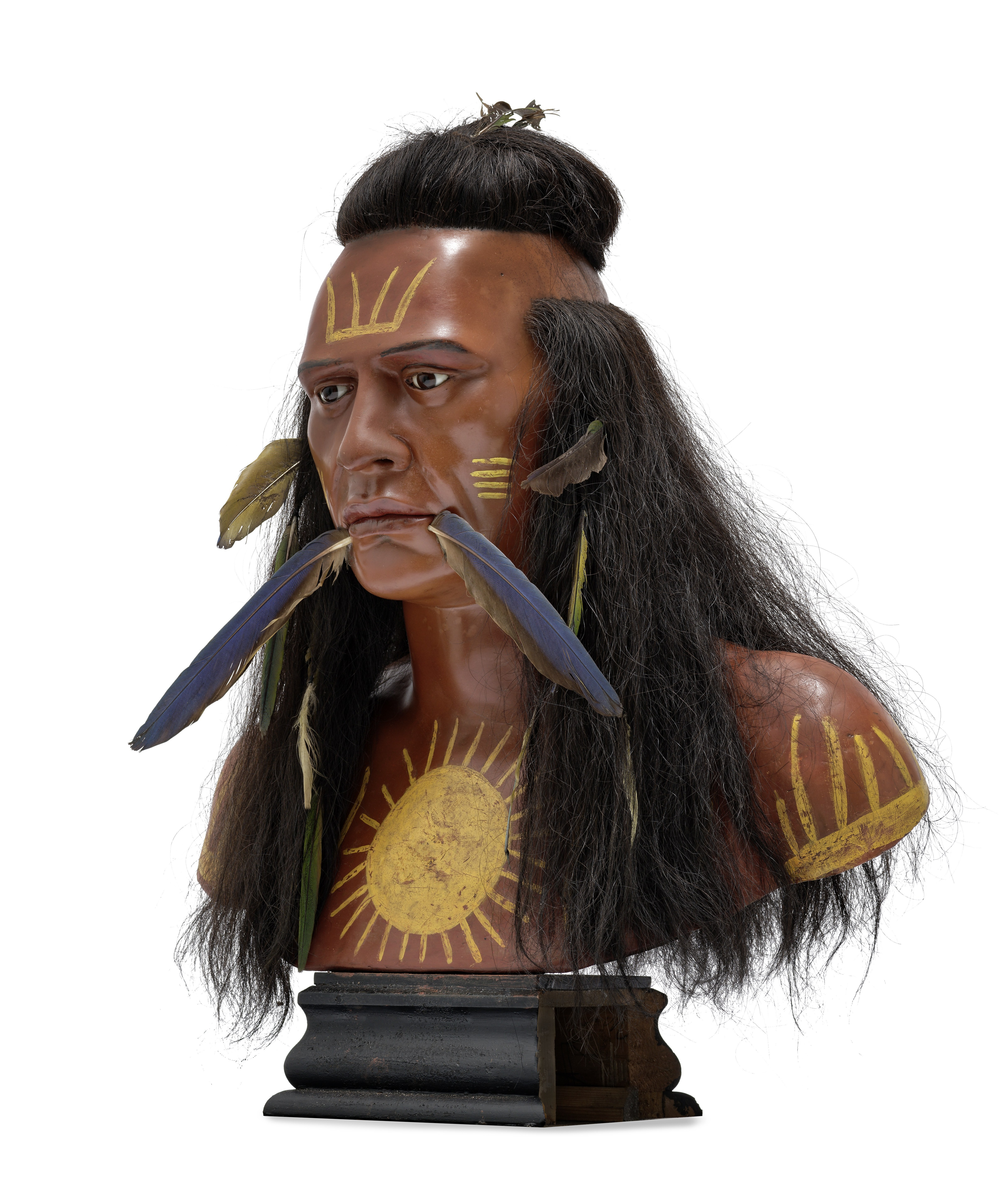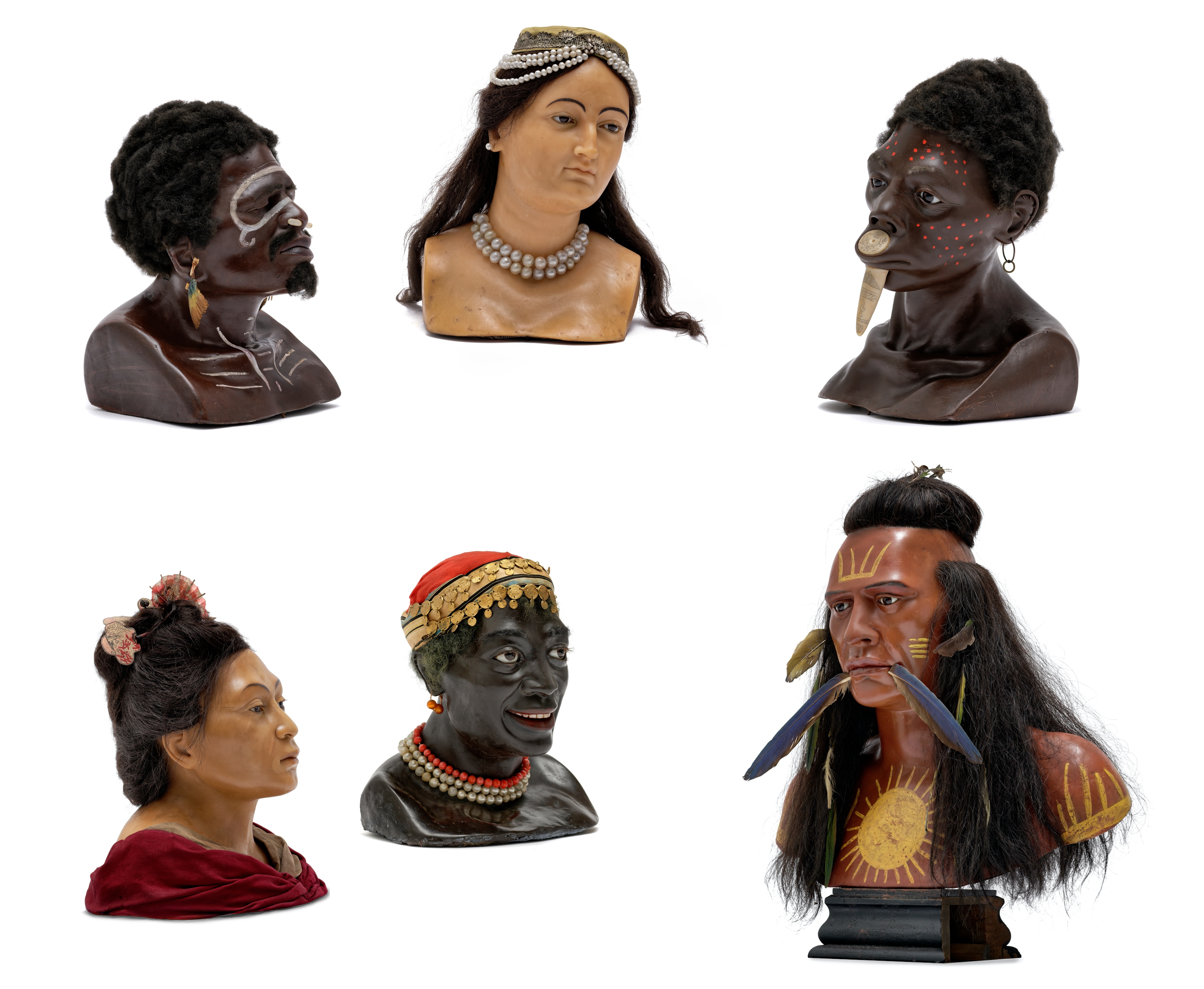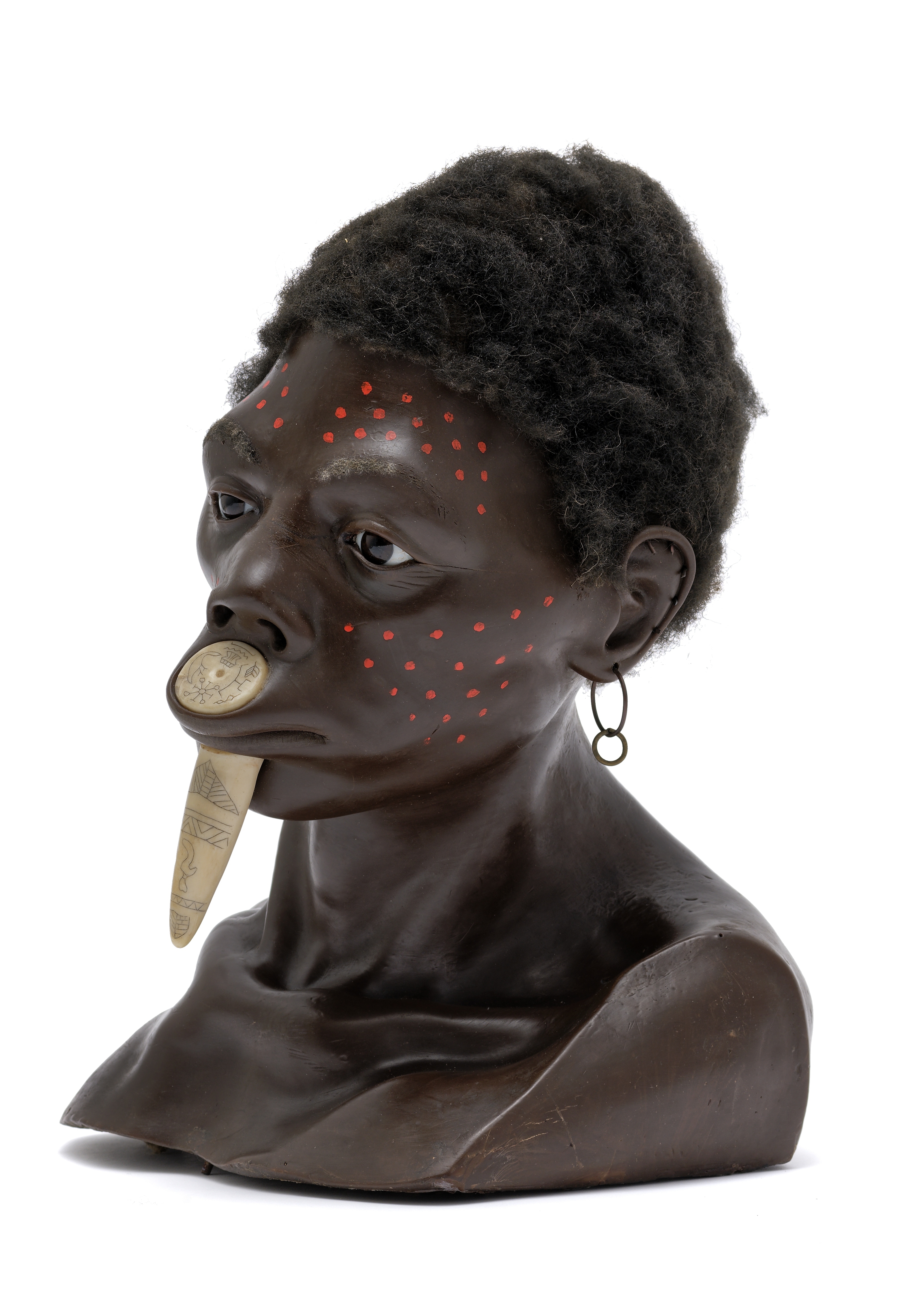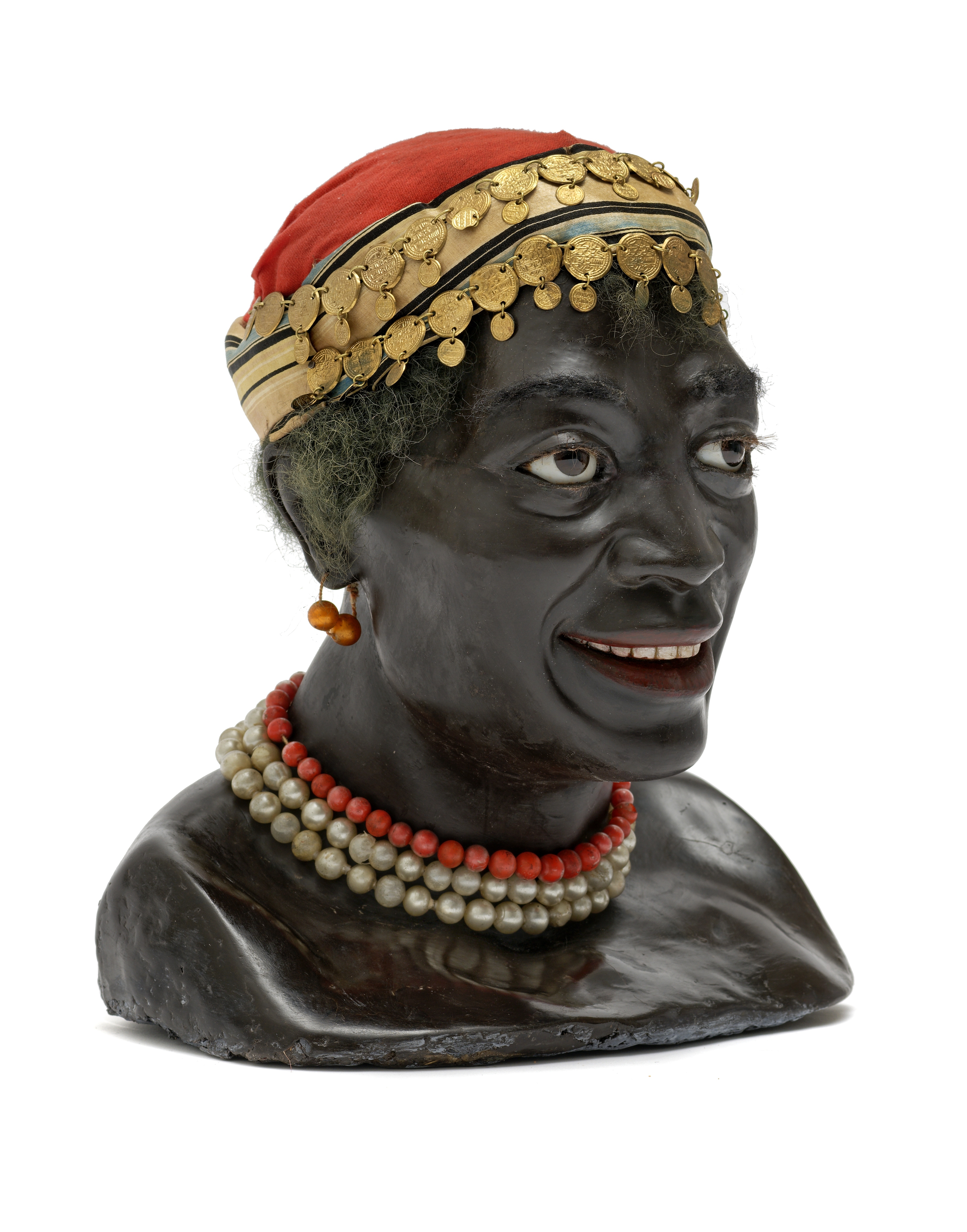 Wax, coloured and partly painted, textile