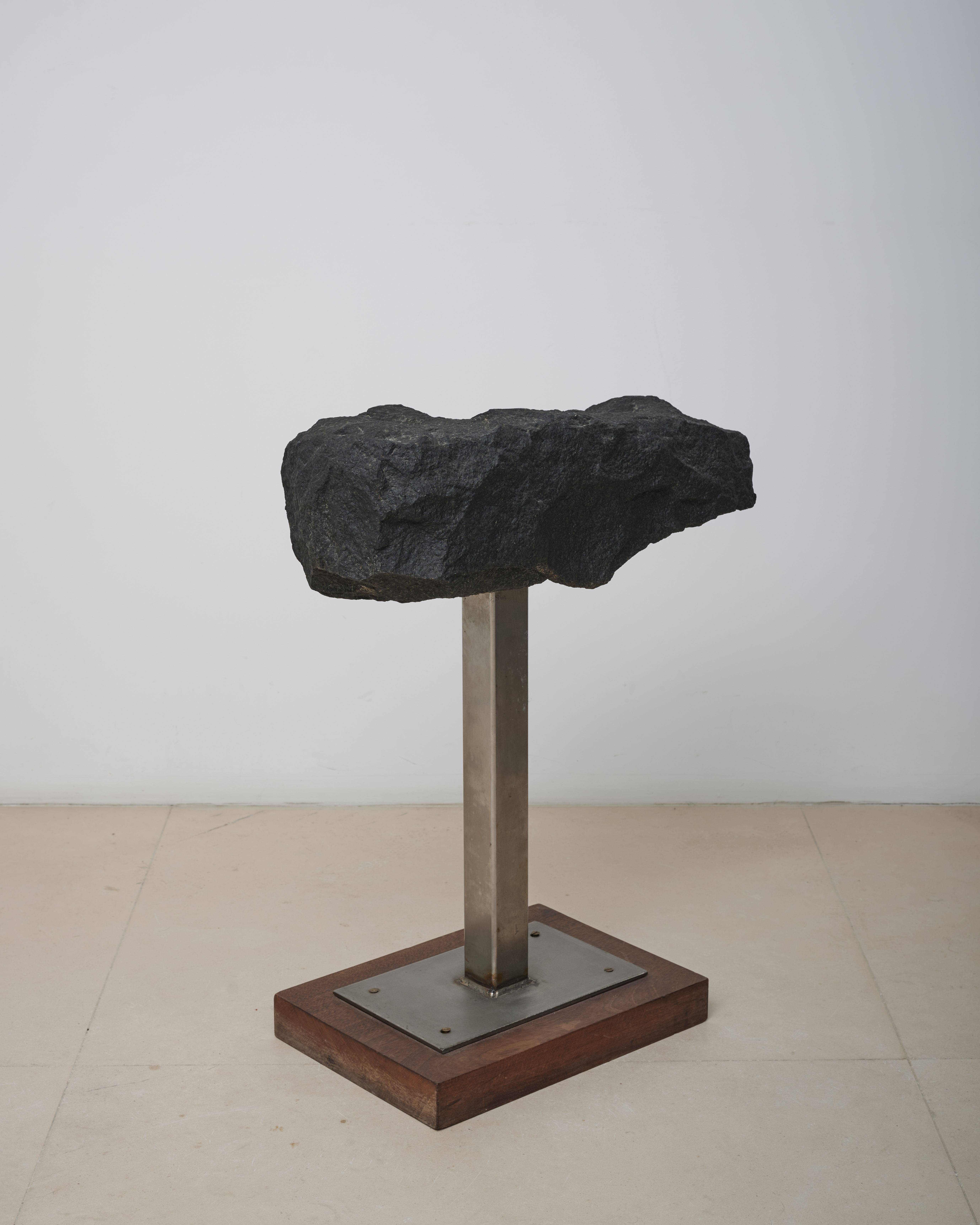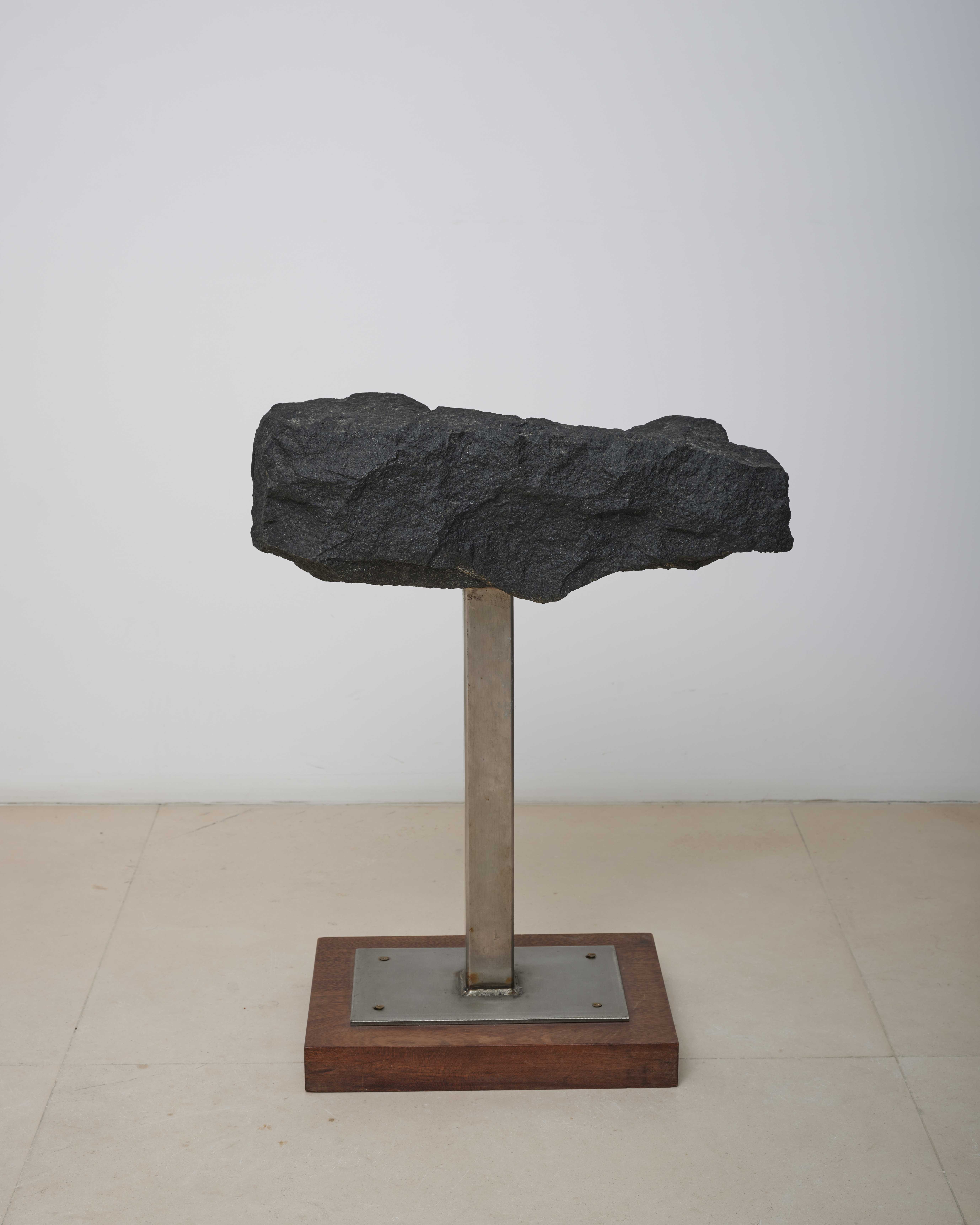 Stone and steel on wooden plinth