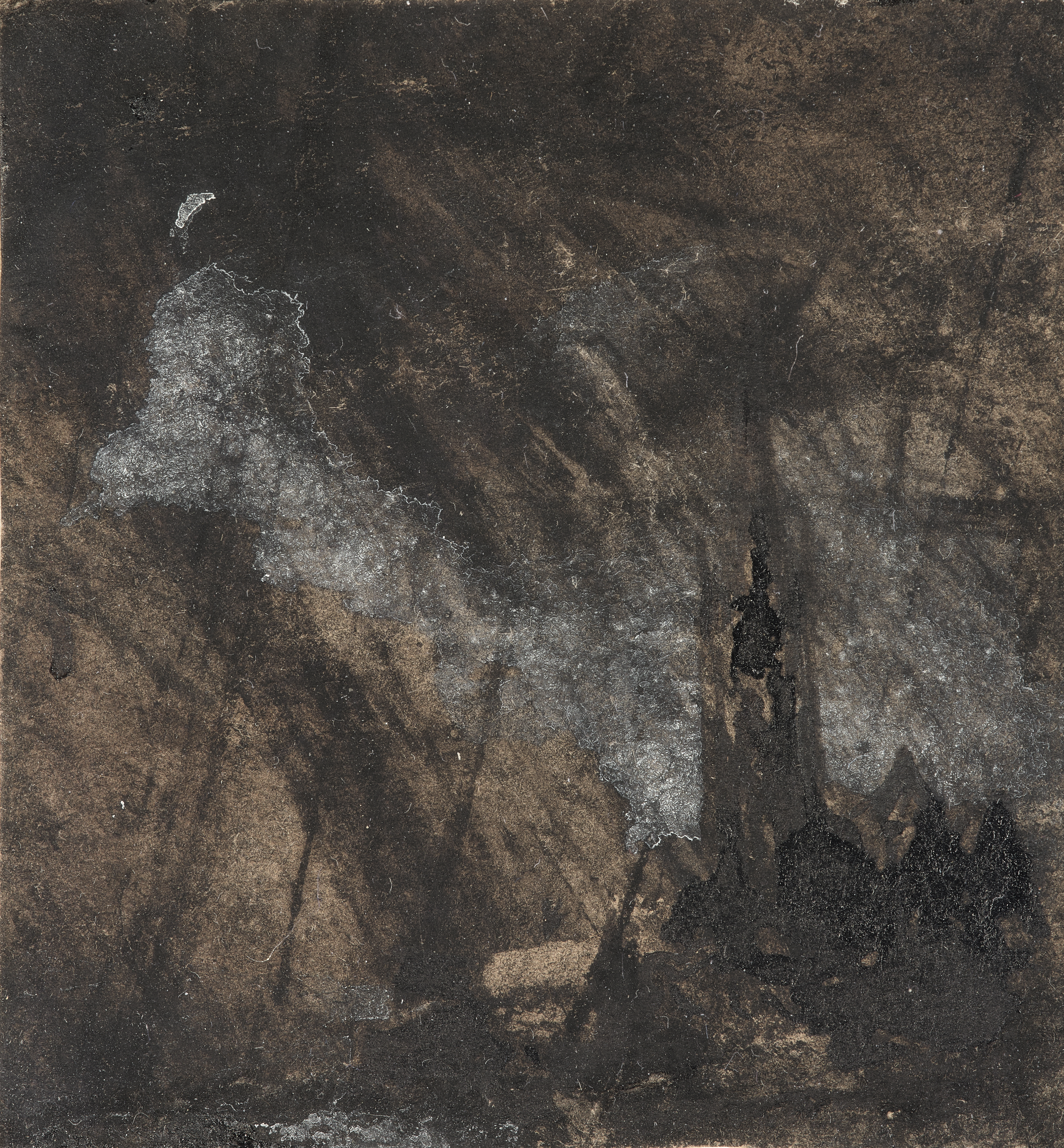 Pen and brown ink, wash and white gouache highlights on paper