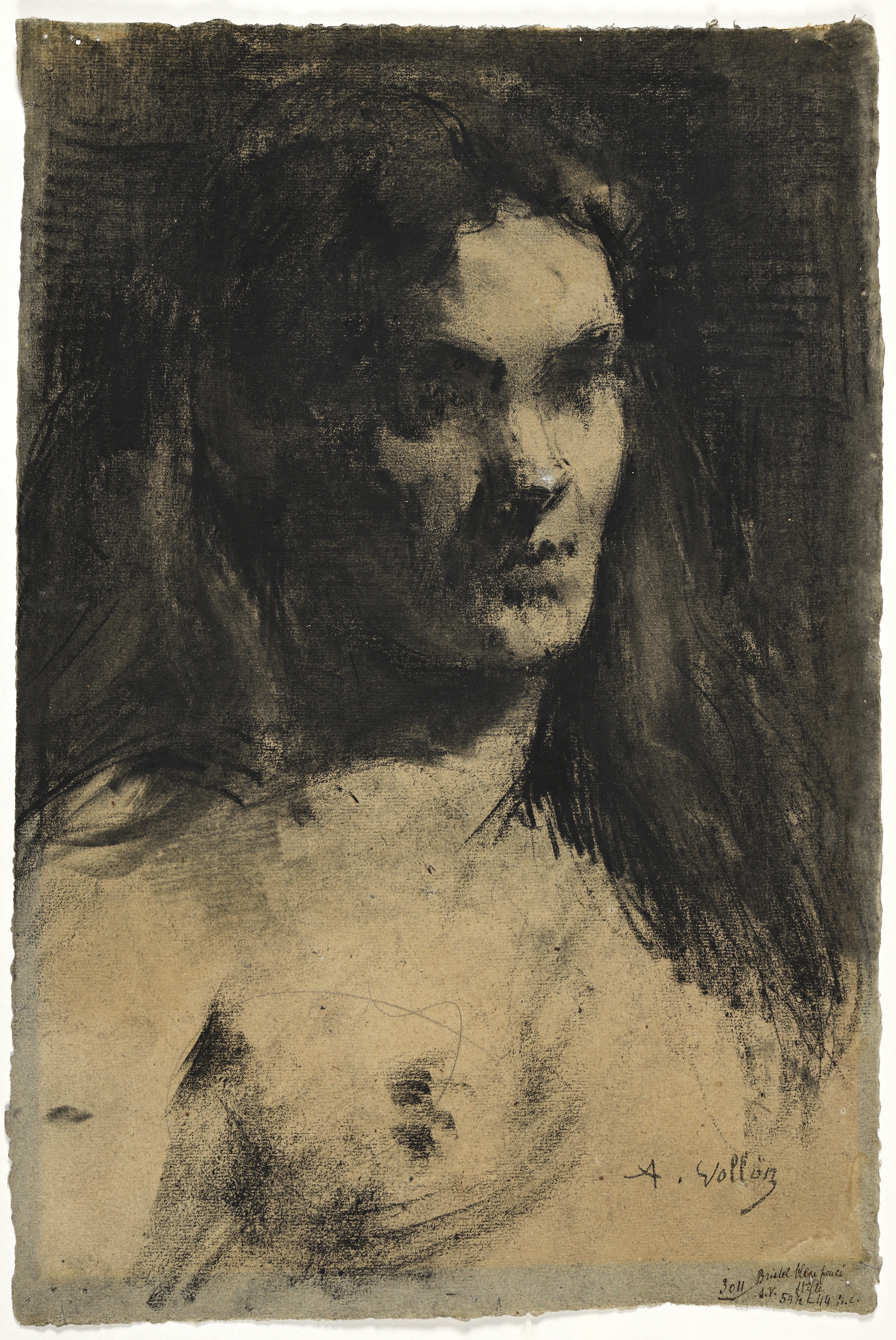 Charcoal with white chalk highlights on paper