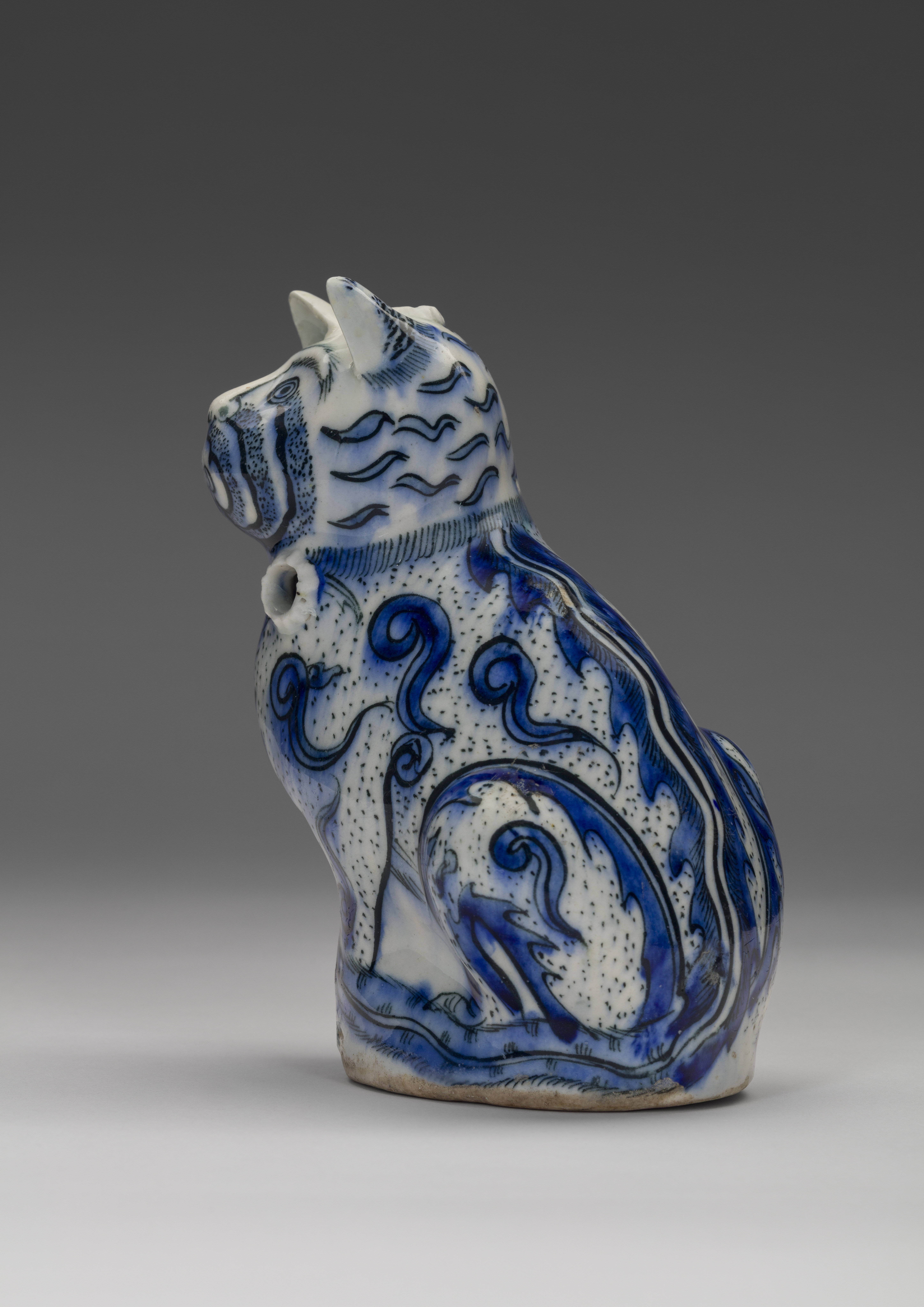 Fritware painted with cobalt blue and black under a clear glaze
