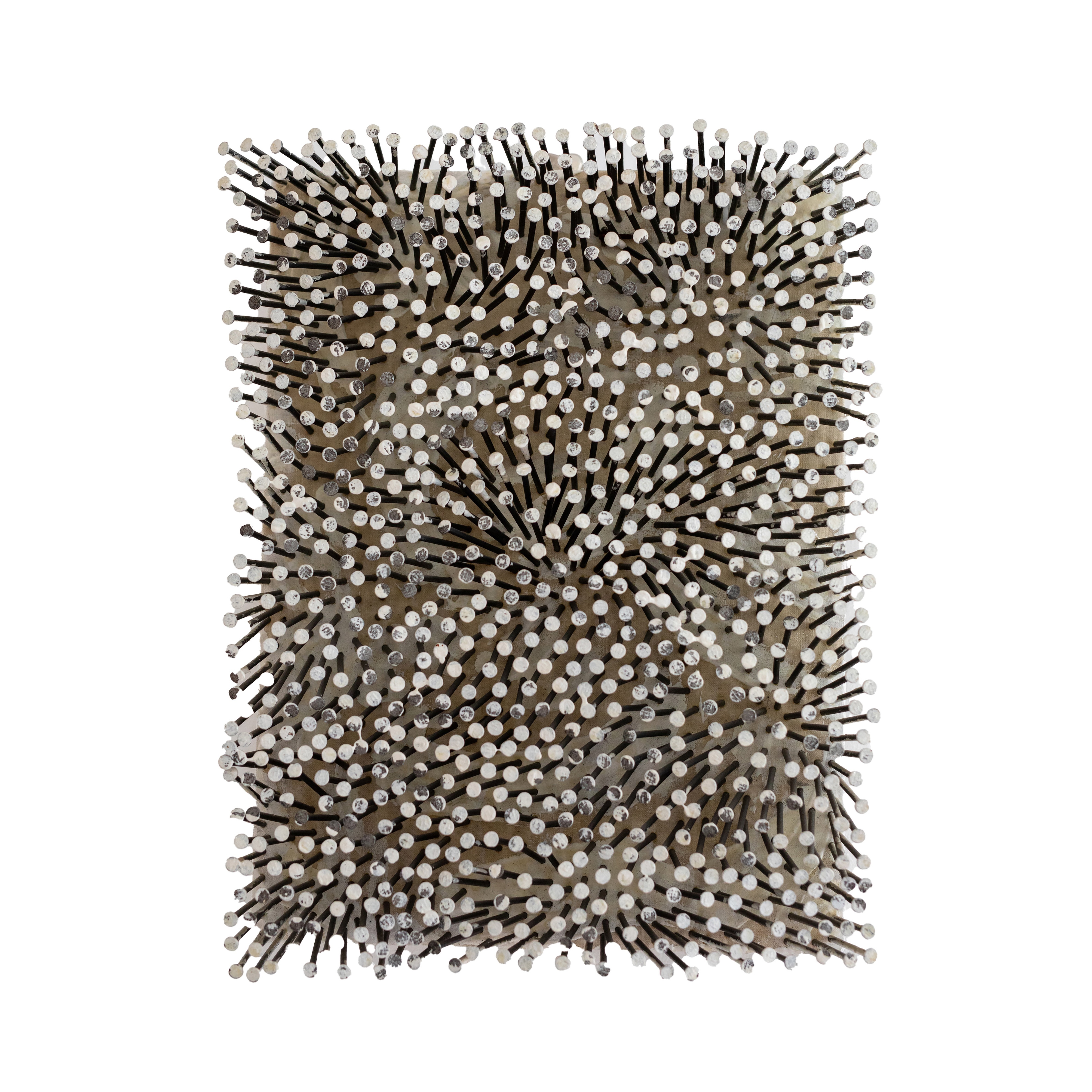 nails, white colour on canvas on wood