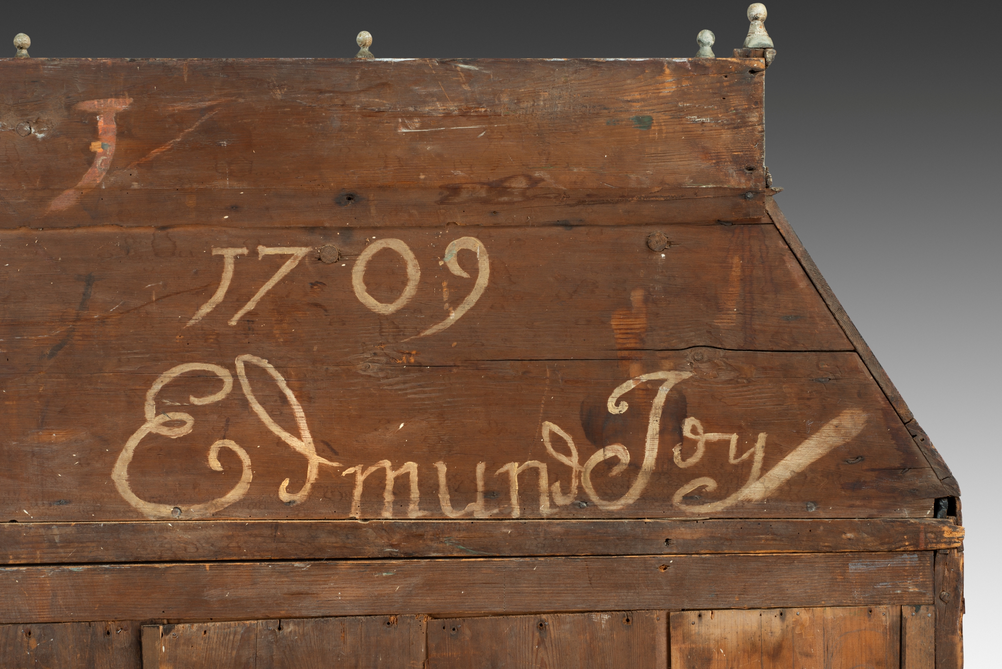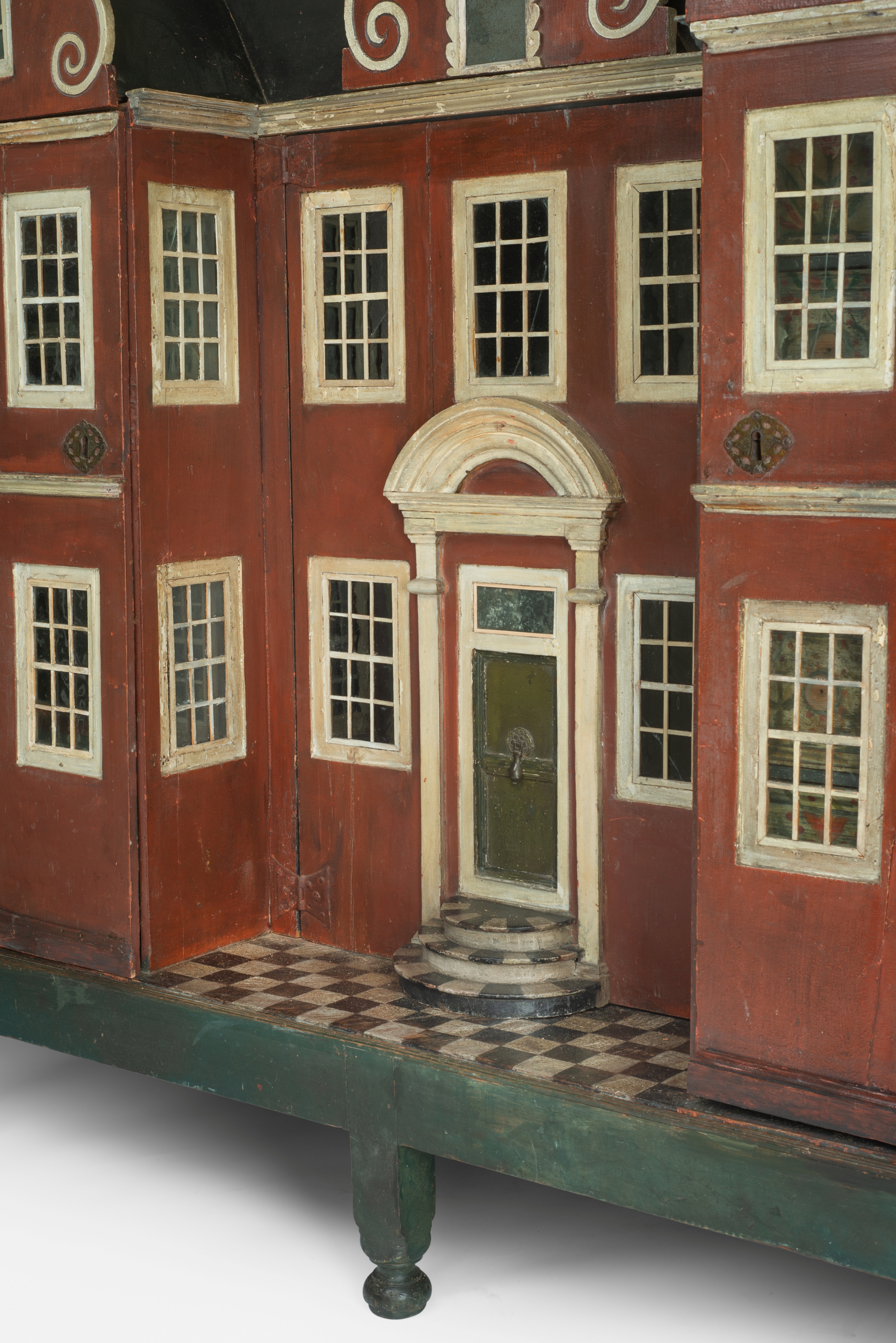 Painted elm, pine and glass