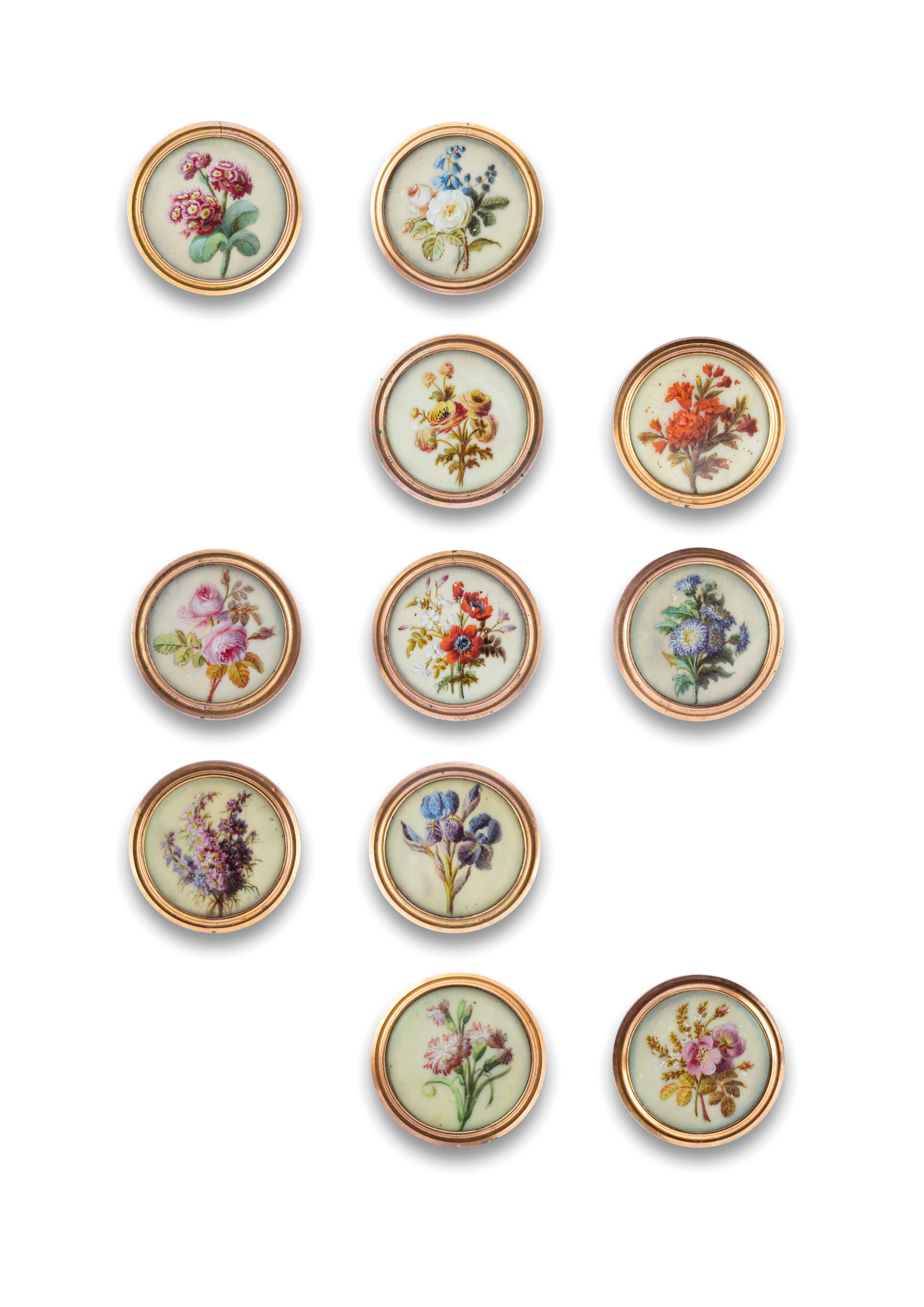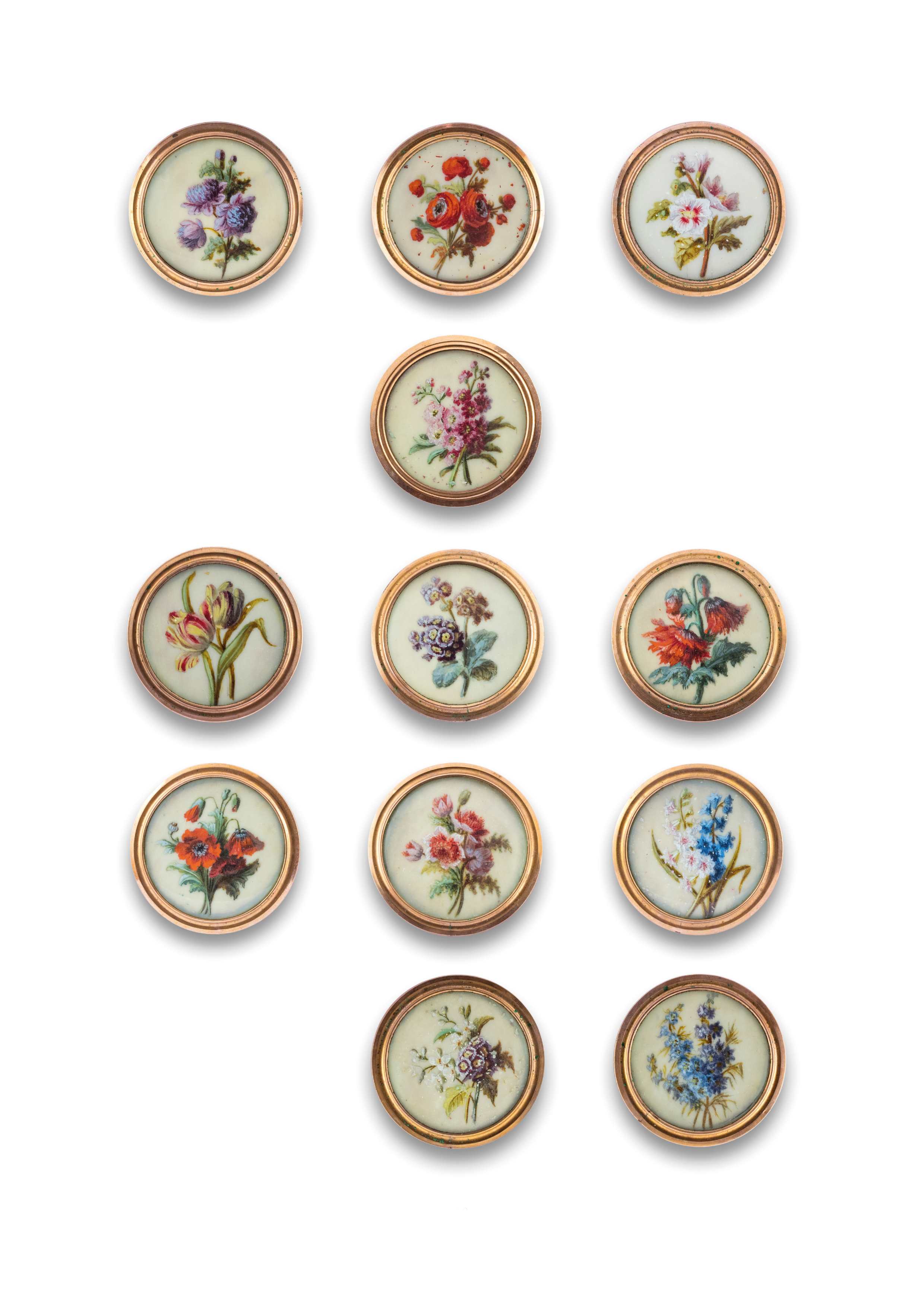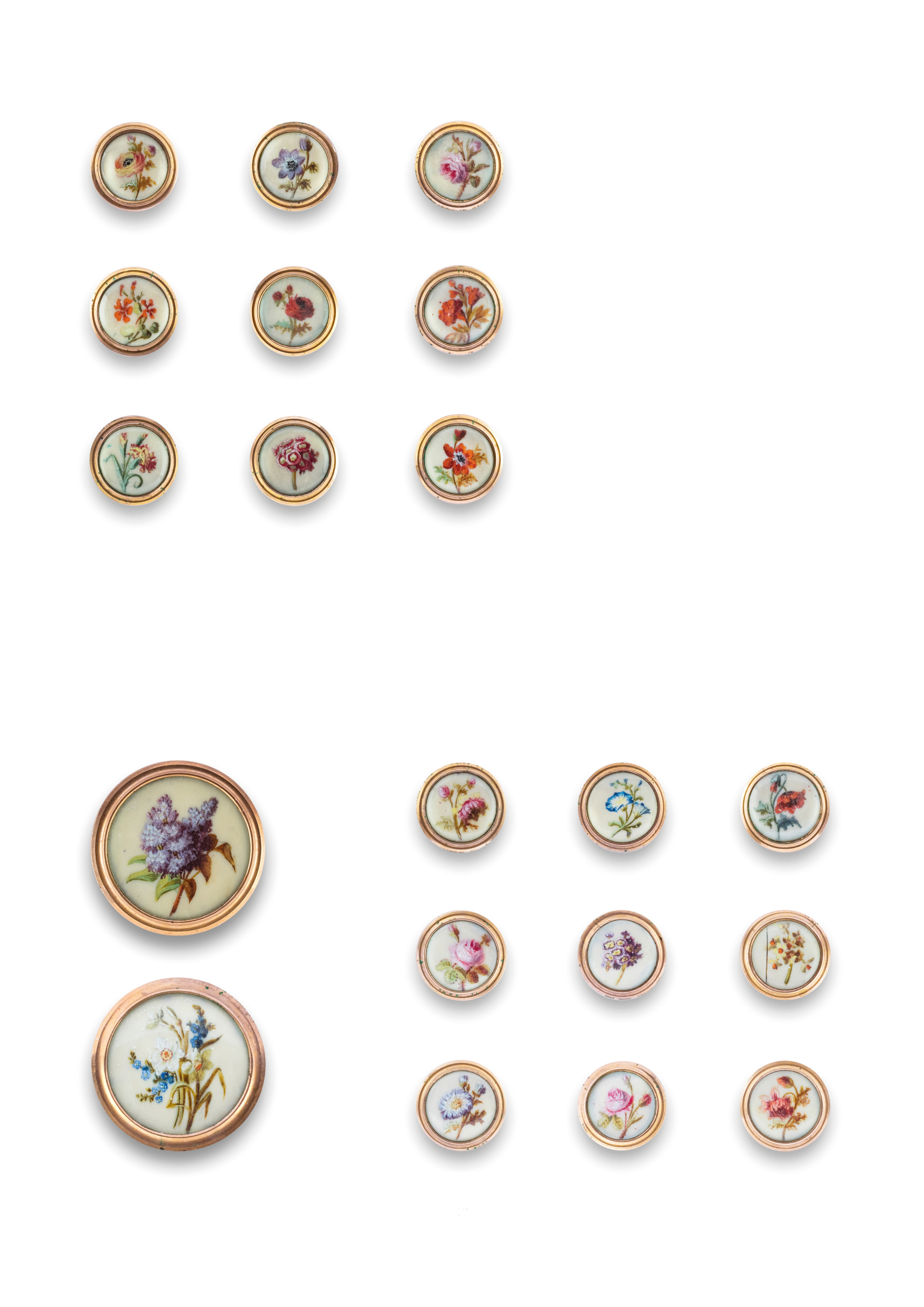 ivory backed with mother-of-pearl (with sew-through shank), under glass